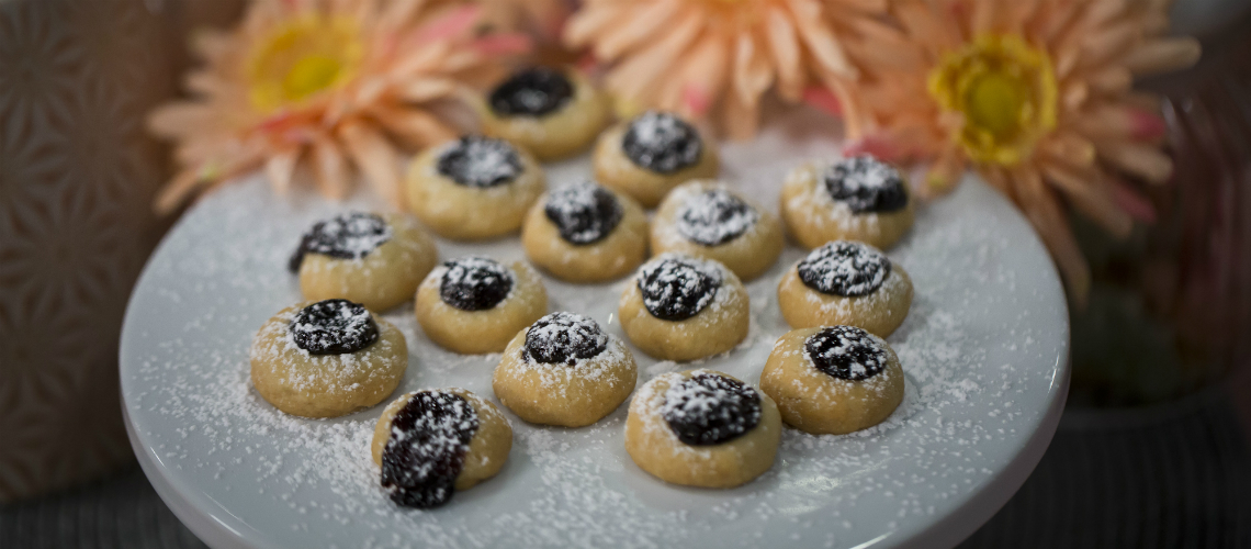 A tölteléket úgy készítjük el, hogy a pikáns lekvárba, vagy dzsembe őrölt mogyorót és rumot keverünk. A keverék annyira legyen „sűrű”, hogy ne folyjon. Habzsákból megtöltjük a mélyedéseket így a sütik készen állnak a sütésre.