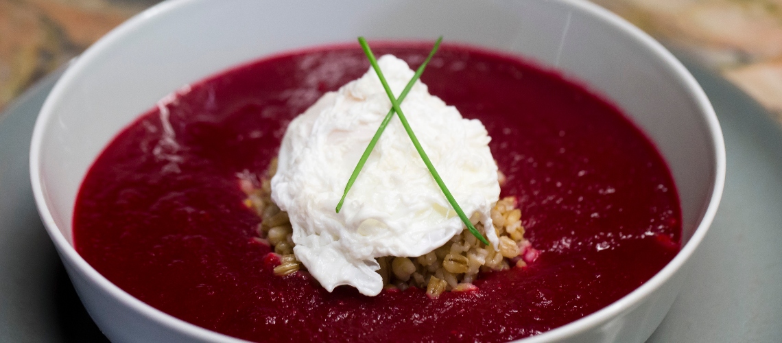 Tálaláskor a tányér közepére teszünk gerslit, ráhelyezünk egy buggyantott tojást és pár szál metélőhagymával díszítjük. A levest körécsurgatjuk vagy egy kiöntőben tálaljuk mellé.