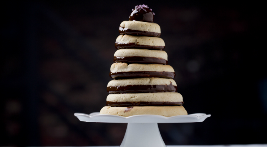 A fehérjét és a porcukrot villával összekeverjük, és éjszakára hűtőbe tesszük. A marcipánba belegyúrjuk a mandulát, és apránként annyi fehérjét adunk hozzá, hogy egy jól formázható masszát kapjunk. Ne legyen ragacsos és folyós, de ne is essen szét. A masszát 1 órára hűtőbe tesszük, majd kis hengereket sodrunk belőle és 6 db csíkot vágunk belőle. A legkisebb 10 cm legyen, és 3 centinként haladjunk. A csíkokból köröket formázunk. A végén még egy golyót is formázhatunk a torony tetejére. 190 fokon 5-10 percig sütjük a köröket, épphogy csak egy kis színt kell kapjon. Amikor kivesszük még lágy, de ha hagyjuk kihűlni, akkor visszakeményedik és összeragaszthatjuk a tornyot az olvasztott csokival.