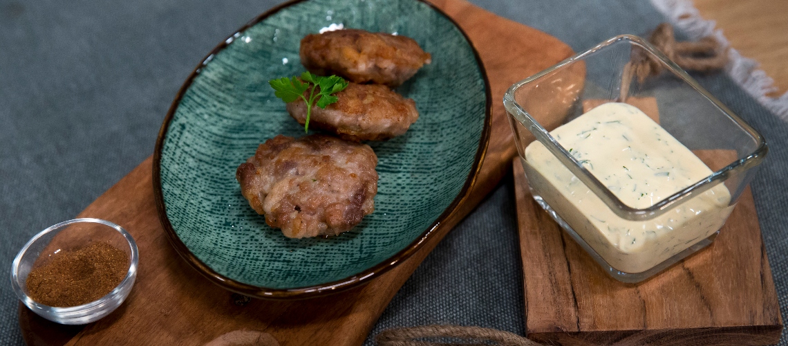 A halat és a hagymát felaprítjuk, majd pogácsákat formázunk belőle, szerecsendióval és sóval ízesítjük, hűtőben pihentetjük, majd lisztben megforgatva olajban kisütjük. Tejföllel vagy majonézzel tálaljuk, kaporral díszítjük.