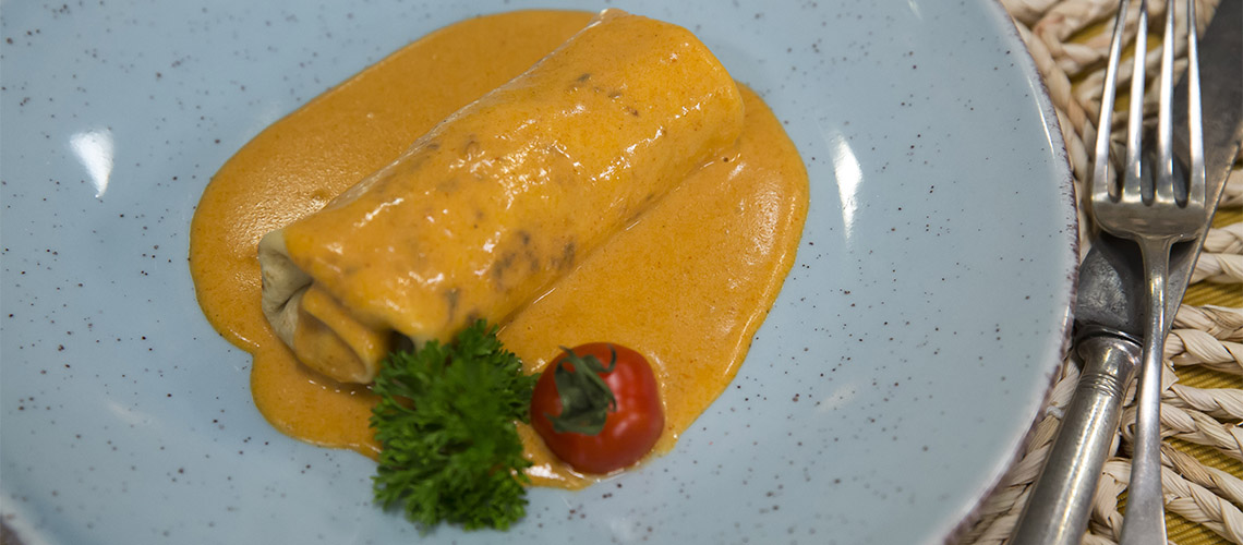 Finomra vágott vöröshagymát, paprikát, paradicsomot zsírban lepirítunk, majd fűszerpaprikával szórva pörköltalapot készítünk. Sózzuk, fűszerezzük kevés borssal, őrölt köménnyel. Ebben pároljuk puhára az egész csirkemellet és combot. A húsokat a léből kiszedve lehűtjük, kicsontozzuk és apróra daraboljuk. Az alapot leszűrjük, visszaforraljuk, tejföllel, tejszínnel dúsítjuk (esetleg kevés liszttel sűrítjük). A mártásból néhány evőkanálnyit a darabolt, főtt húshoz keverünk. Liszttel, tojással, tejjel, vízzel sós palacsintatésztát készítünk, majd palacsintákat sütünk. Ezekbe töltjük a fűszeres csirkehúst, és mártással leöntve tálaljuk. Néhány helyen a töltött palacsintákat lisztbe, tojásba, zsemlemorzsába forgatják, majd bő forró olajban kisütik.
