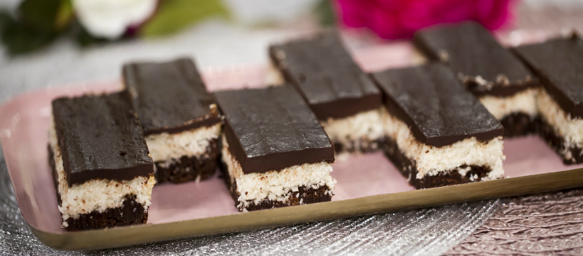 A browniehoz megolvasztjuk a csokit a vajjal. Ezalatt a tojásokat kihabosítjuk a cukorral, majd belekeverjük az olvasztott vajas csokit és a csipet sóval elkevert lisztet. 175 fokos sütőben 15-2o percig sütjük. Közben elkészítjük a kókuszos réteget: a vajat a cukorral és a vaníliakivonattal kihabosítjuk, hozzáadjuk a tojásfehérjét, a kókuszreszeléket és kevés tejet. Ha már van egy kérge a brownie-nak, kivesszük a sütőből és rátesszük a kókuszos réteget, majd ezzel is sütjük 1o-12 percig. A ganache-hoz felforraljuk a tejszínt és röntjük a csokira, adunk hozzá vajat és mézet is, hogy még fényesebb legyen.
