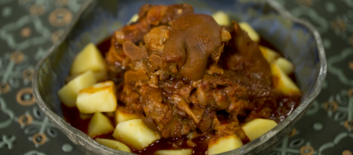 Sózom, fűszerezem őrölt köménnyel és zúzott fokhagymával. Miután zsírjára pirult hozzáadom a darabolt sertés körmöt. Vízzel felöntve annyira puhára főzöm, hogy a csontról magától leessen a „hús”.