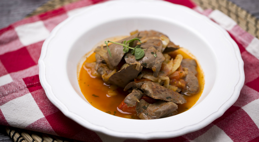 A bulgurt felöntjük forró alaplével, letakarjuk és hagyjuk állni. A szeletelt vöröshagymát kevés olajban megpirítjuk, rátesszük a darabolt nyúlmájat, majd néhány perc sütés után hozzáadjuk a csíkozott paprikát, a zúzott fokhagymát. Megszórjuk fűszerpaprikával, sózzuk, borsozzuk és kevés alaplével vagy vízzel felöntjük. Néhány perc alatt puhára pároljuk. Belekeverjük a cikkezett paradicsomot és a friss, vágott majorannát. Az átkevert bulgurral és a szeletelt nyúlgerinc filével tálaljuk.