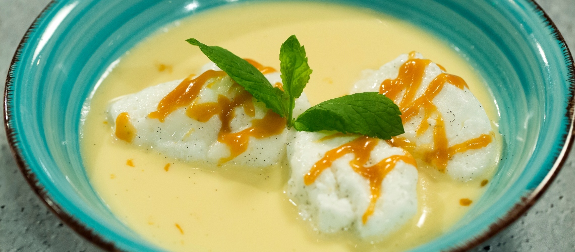 A tejhez adjuk hozzá a vaníliarúd kikapart magjait, majd forraljuk fel, és kanállal szaggassuk bele a tojáshabból a galuskákat. Két-három percig főzzük, majd óvatosan fordítsuk meg, újabb két-három perc, és már szedhetjük is ki egy üres tálba.