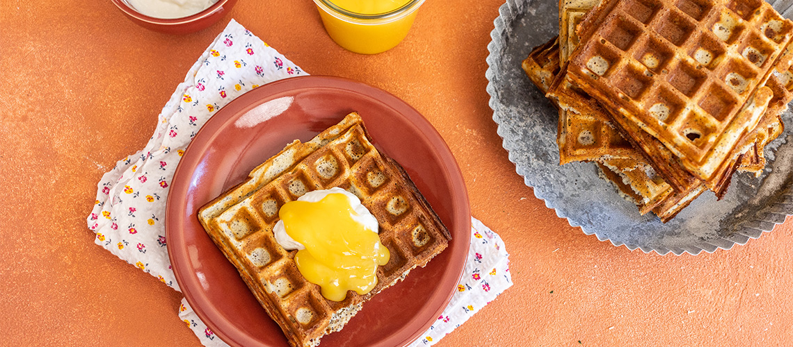 A gofrihoz a tojássárgákat fehéredésig keverjük a cukorral, majd hozzáadjuk a ricottát és a tejet, és simára keverjük. Hozzákeverjük a kukoricadarával , sóval, sütőporral elkevert lisztet és simára dolgozzuk. Végül az olvasztott vajjal is kikeverjük és 10 percre félretesszük.
