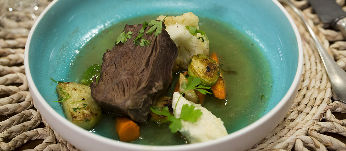 A gyökérzöldségeket és a fűszereket serpenyőben megpirítjuk. A paradicsompürét szintén megpirítjuk, majd felöntjük vörösborral és felforraljuk. Ezután öntsük fel az alaplével, főzzük, amíg a zöldségek megpuhulnak. Pépesítjük és ízesítjük. A maradék zöldségeket és a húst serpenyőben átpirítjuk: a húst zöldségmártásban tálaljuk. A Táfelspitzhez a húslevest használjuk fel: az összes zöldséget megfőzzük, a tormát lereszeljük. A zöldségeket vajban szép aranysárgára pirítjuk, és ráforgatjuk a petrezselymet.