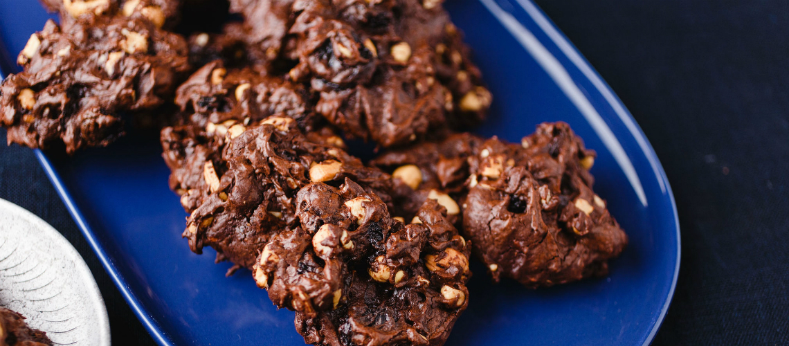 Egy keverőtálban összekeverjük a lisztet a kakaóval, sóval és a sütőporral. A vajat és 20 dkg csokoládét vízgőz felett felolvasztunk.