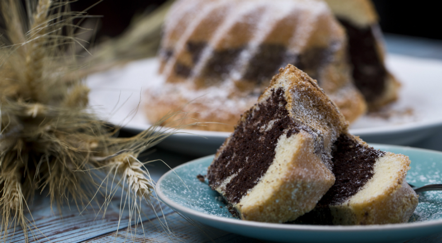 Először szétválasztjuk a tojásokat, a tojásfehérjékből 1 csipetnyi sóval kemény habot verünk. A tojások sárgáját a cukorral sárga habbá verjük, majd fokozatosan hozzáadjuk a lisztet, olajat, és meleg vizet. Ekkor óvatosan beleforgatjuk a tojásfehérjéből vert habot. A kuglóf formát olajjal kikenjük és beszórjuk zsemlemorzsával. A kész tésztát két részre osztjuk, az egyik részbe belekeverjük a kakaót. A kétféle tésztát felváltva a formába töltjük, hogy szépen váltakozzanak a rétegek, így alakul ki a kuglóf márványozottsága. 180 °C fokra előmelegített sütőben kb. 45 percig, tűpróbáig sütjük.