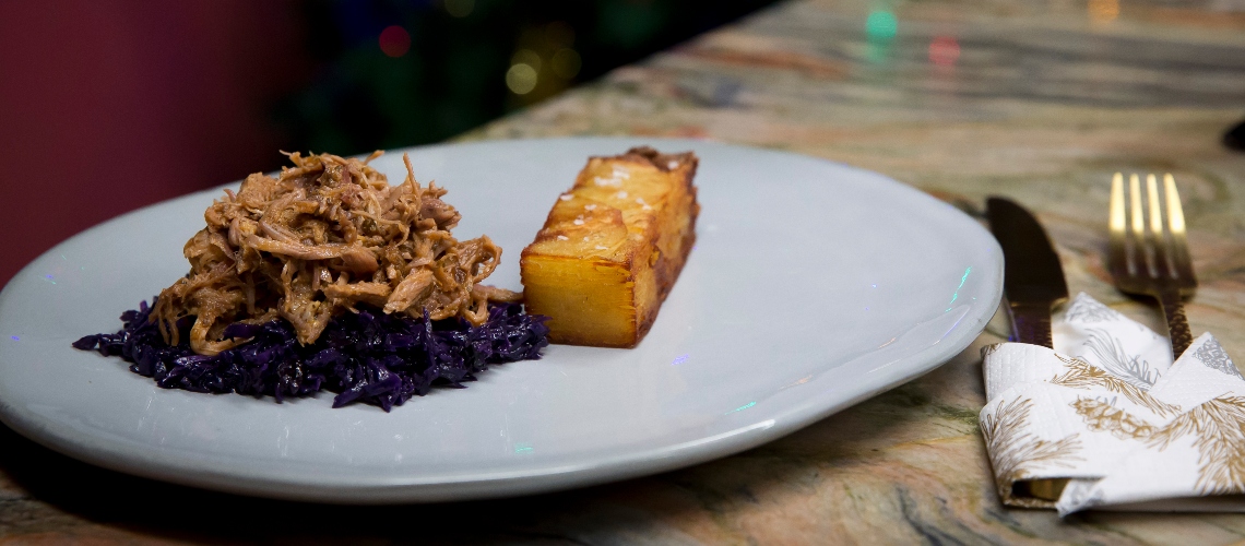 A pulled porkhoz a sertéslapockát bekenjük olívaolajjal és jó alaposan befűszerezzük (só, bors, barbeque fűszerkeverék). Egy tepsibe helyezzük, és mellé teszünk 1-1 lilahagymát, sárgarépát és szárzellert nagyobb darabokra felaprítva. Kis vizet öntünk alá, és fólia alatt sütjük 140 fokon 6-8 órát. A vége felé levehetjük a fóliát.