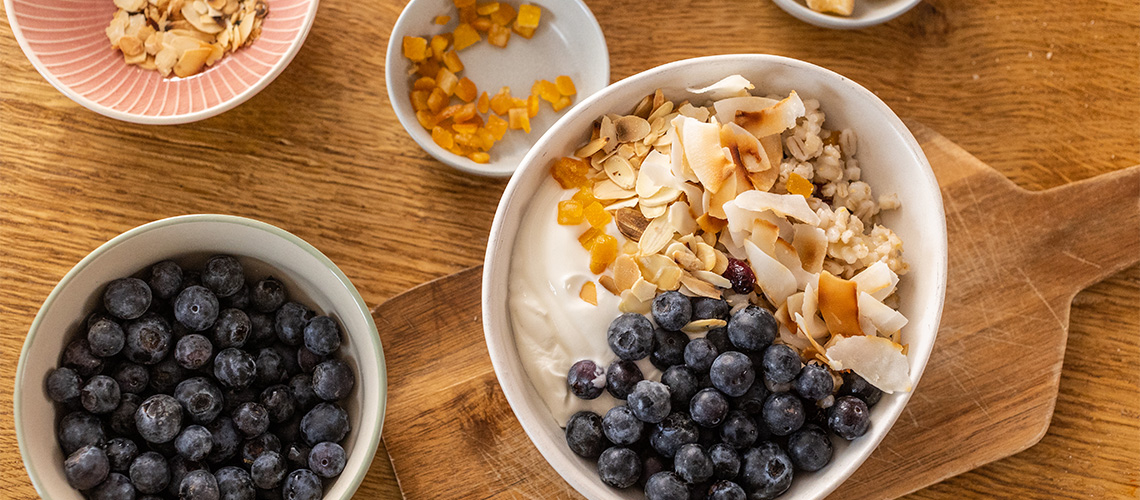 Közben felaprítjuk a pisztáciát, a kandírozott narancsot és gyömbért. Ha kész, villával fellazítjuk a kuszkuszt, tányérokba szedjük, megszórjuk a pisztáciával, a mandulával, a gyömbérrel, majd görög joghurtot kanalazunk rájuk, végül a friss áfonyával és a mézzel megcsorgatva tálaljuk.