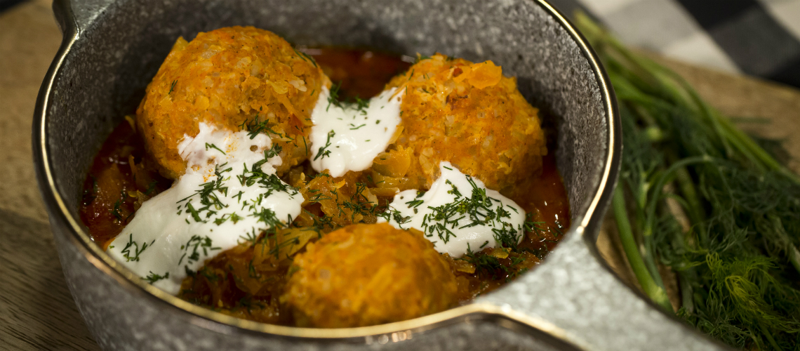 Az apró kockára vágott szalonnán megpirítjuk a finomra vágott vöröshagymát. Egy keveset félreteszünk belőle, majd adunk hozzá darabolt paprikát, paradicsomot. Fokhagymával, őrölt köménnyel, babérlevéllel fűszerezzük. Megszórjuk fűszerpaprikával, felöntjük a csülök főzőlevével, kétszer, háromszor visszapároljuk. Ekkor rakjuk bele a darabolt, átmosott savanyú káposztát. Amikor félig megfőtt kettészedjük. Az egyik felét eltesszük későbbre, a korhelyleveshez. A darált húst összekeverjük a félretett szalonnás, hagymás alappal, a párolt rizzsel. Borssal, fűszerpaprikával fűszerezzük. Sózzuk és egy tojással alaposan összedolgozzuk. A félig főtt káposzta alapra helyezzük és puhára főzzük. A legvégén friss kaporral szórjuk és tejföllel kínáljuk.