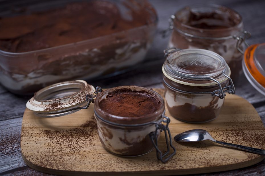 Kétféle krémet készítünk, az egyiket tejszínből, mascarponéból és porcukorból, a másikat tejszínből, kakaóporból és porcukorból. Frissen főzött kávéba mártogatjuk a babapiskótát. Majd poharakba vagy egy nagyobb jénai tálba összeállítjuk a tiramisut. Legalulra csokikrémet teszünk, ezután babapiskótát, majd mascarponés krémet és ismét babapiskótát. Addig rétegezzük, míg elfogynak az összetevők. A tetejét megszórjuk kakaóporral, és 4-6 órára hűtőbe tesszük.