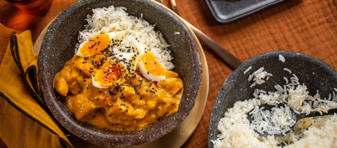 A kókuszzsírt egy nagy serpenyőben felhevítjük. Hozzáadjuk a fűszereket, majd ha ezek megpirultak és illatozni kezdenek, hozzáadjuk a finomra vágott hagymát, majd belereszeljük a gyömbért és a fokhagymát is. Üvegesre pároljuk a hagymát, majd hozzáadjuk a paradicsomot, a kurkumát, koriandert, a curryt, egy kevés csilit és megsózzuk. Sűrűre főzzük, majd hozzáadjuk a kókusztejet is. Botmixerrel simára turmixoljuk. Beletesszük a főtt tojásokat, lefedjük, lehúzzuk a tűzről és 10 percig hagyjuk pihenni. Főtt rizzsel tálaljuk.