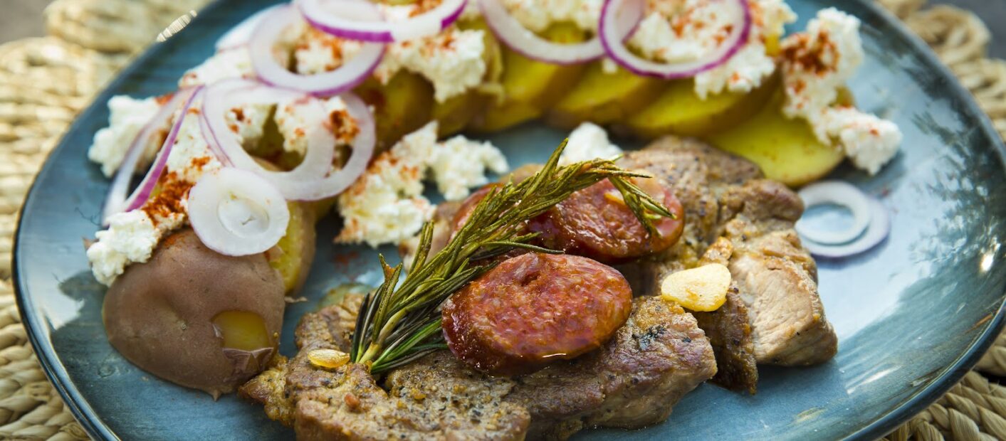 Rozmaringos pecsenye: a kicsontozott sertéstarja szeleteket sózzuk, borsozzuk. A sütés zsírban történik, mindkét oldalát megpirítjuk, majd kivesszük pihentetni. 10-15 perc pihentetés után a tarja szeleteket visszarakjuk a serpenyőbe, mellé tesszük a felkarikázott kolbászt és alacsony lángon fokhagymával és friss rozmaringgal készre sütjük. A kész szeleteket a kolbásszal, vágott petrezselyemmel tálaljuk a topfekas mellé.