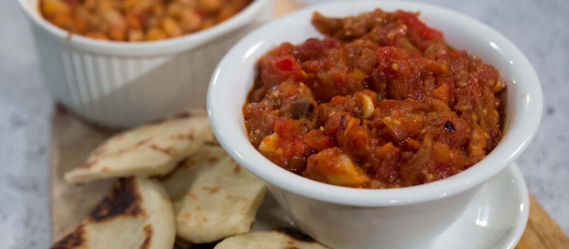 A paradicsom szószból a nagyobb darabokat külön szedjük a zakuszkához.