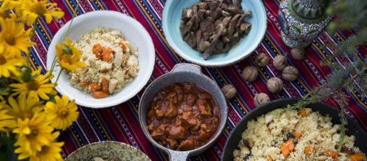 Bárány pörkölt és sült bárány máj nokedlivel, zöldséges kuszkusszal