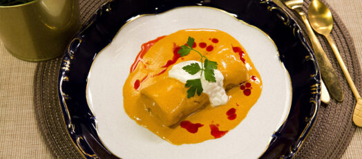 Csirkepaprikás hortobágyi palacsintához