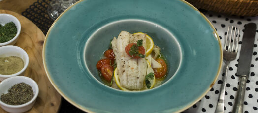 Papírban sült hal koktélparadicsommal és bazsalikommal