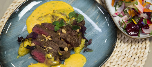 Sertésszűz dijoni mártással, gránátalmával és citrusos zellerrel