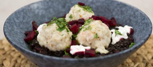 Lassan sült marhanyak zöldfűszeres maceszgombóccal