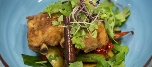 Oldalas ázsiai ízekkel, pirított zöldségekkel