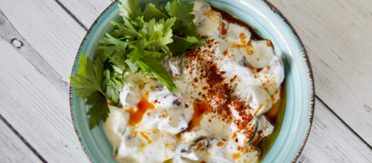 Joghurtos padlizsánsaláta petrezselyemmel és chiliolajjal