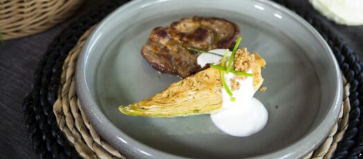 Karfiolsteak paradicsommal és libečka krémes